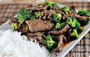 Add 1 tablespoon peanut oil to now-empty skillet; heat until rippling and hot. Add broccoli and cook 30 seconds; add water, cover pan, and lower heat to medium. Steam broccoli until tender-crisp, about 2 minutes. Push the broccoli to the sides of the skillet and add the garlic/ginger mixture. Cook, mashing the mixture with a spoon, until fragrant, about 15-30 seconds. Stir the mixture into the broccoli. Add the beef back to skillet and toss to combine. Whisk the sauce to recombine and add to the skillet. Cook, stirring constantly, until sauce is thickened and evenly distributed, about 1-2 minutes. Serve over rice.